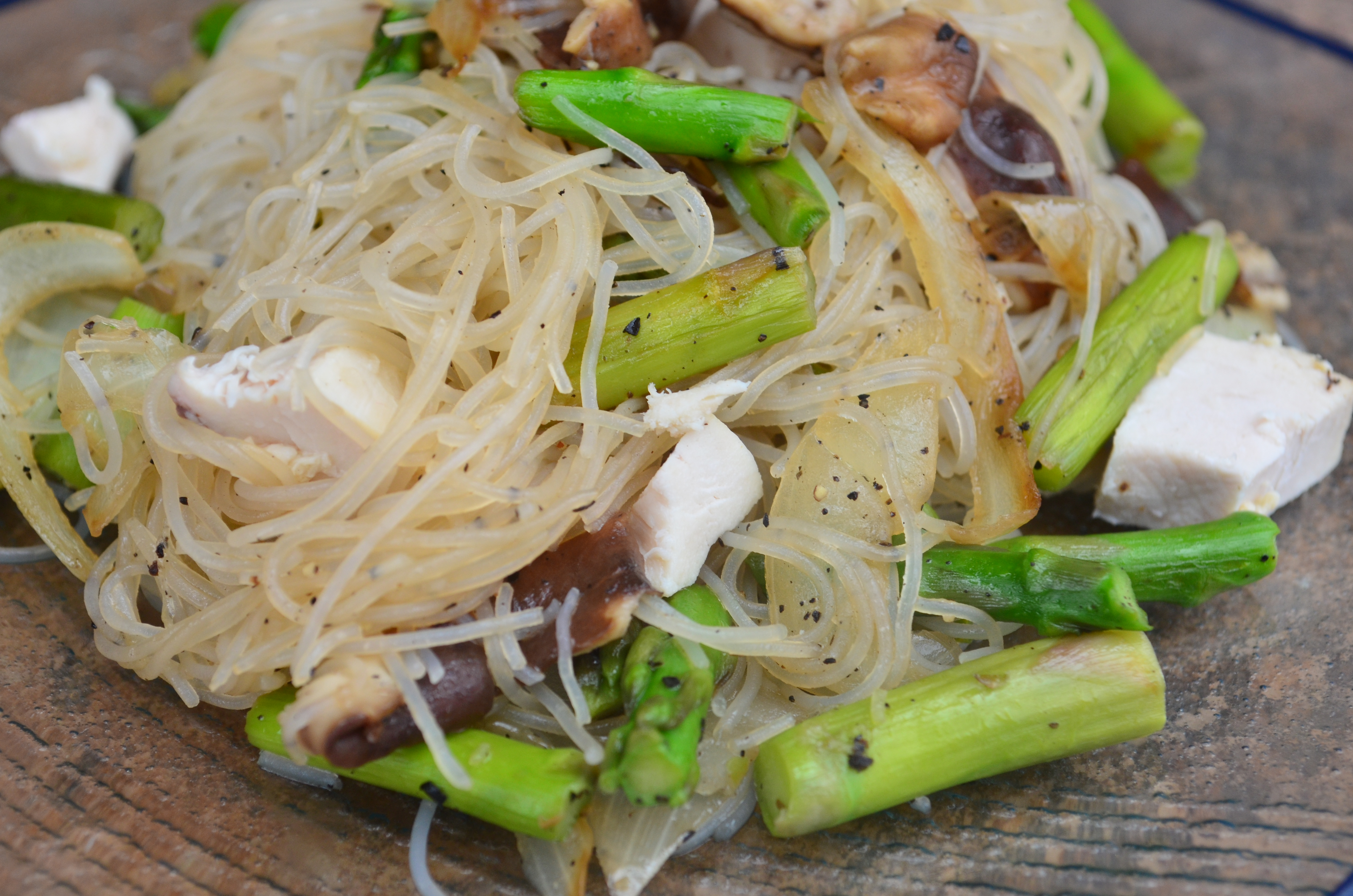 Rice Noodles with Asparagus, Chicken and Shiitake Mushrooms