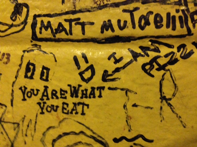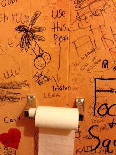There graffiti continues in the bathroom and the things written on the wall– and the toilet– will leave you either in shock, or in stitches, depending on your personality.