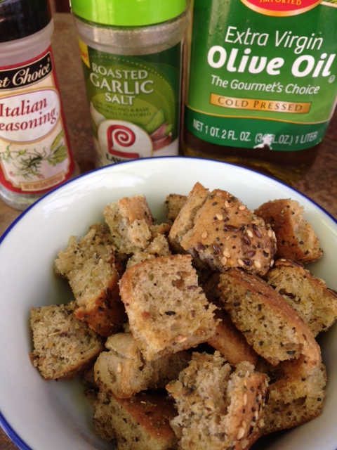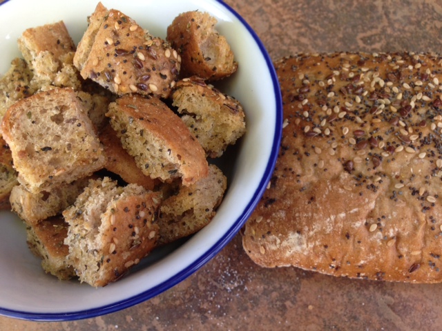 If you don’t have time this week, you can freeze the bread and then defrost it on the counter ad make croutons next week.