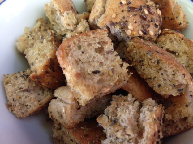 These croutons are great of gazpacho or even dipped in a Bloody Mary (Hey, if you can do it with milk and cookies as a kid, why not croutons and Bloody Marys when you grow up?)